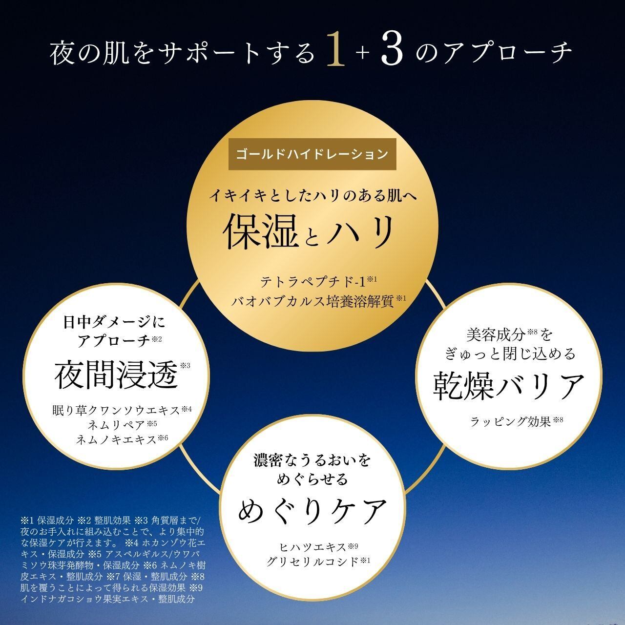 あらゆる輝きを閉じ込めた夜用クリームで、たっぷりと寝た後のようなイキイキとしたハリ肌へ。