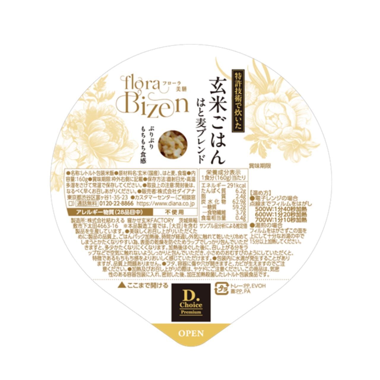 floraBizen 玄米ごはん はと麦ブレンドは、特許技術で炊くことにより柔らかくもちもち食感で美味しい玄米を実現!