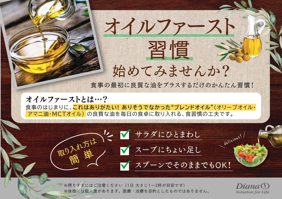 サラダ、味噌汁、スープなど、お好きな食事にかけるだけでOK!不足しがちな“いい油”を、毎日の習慣に♪