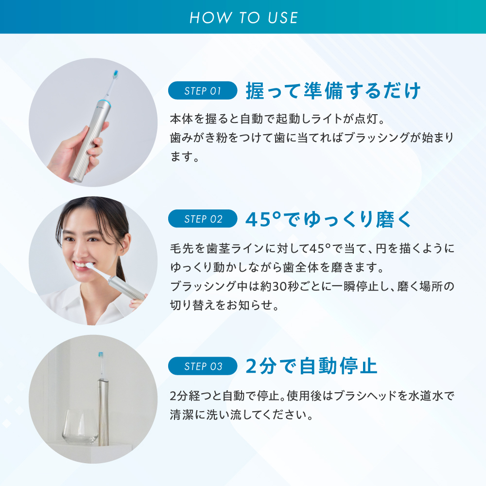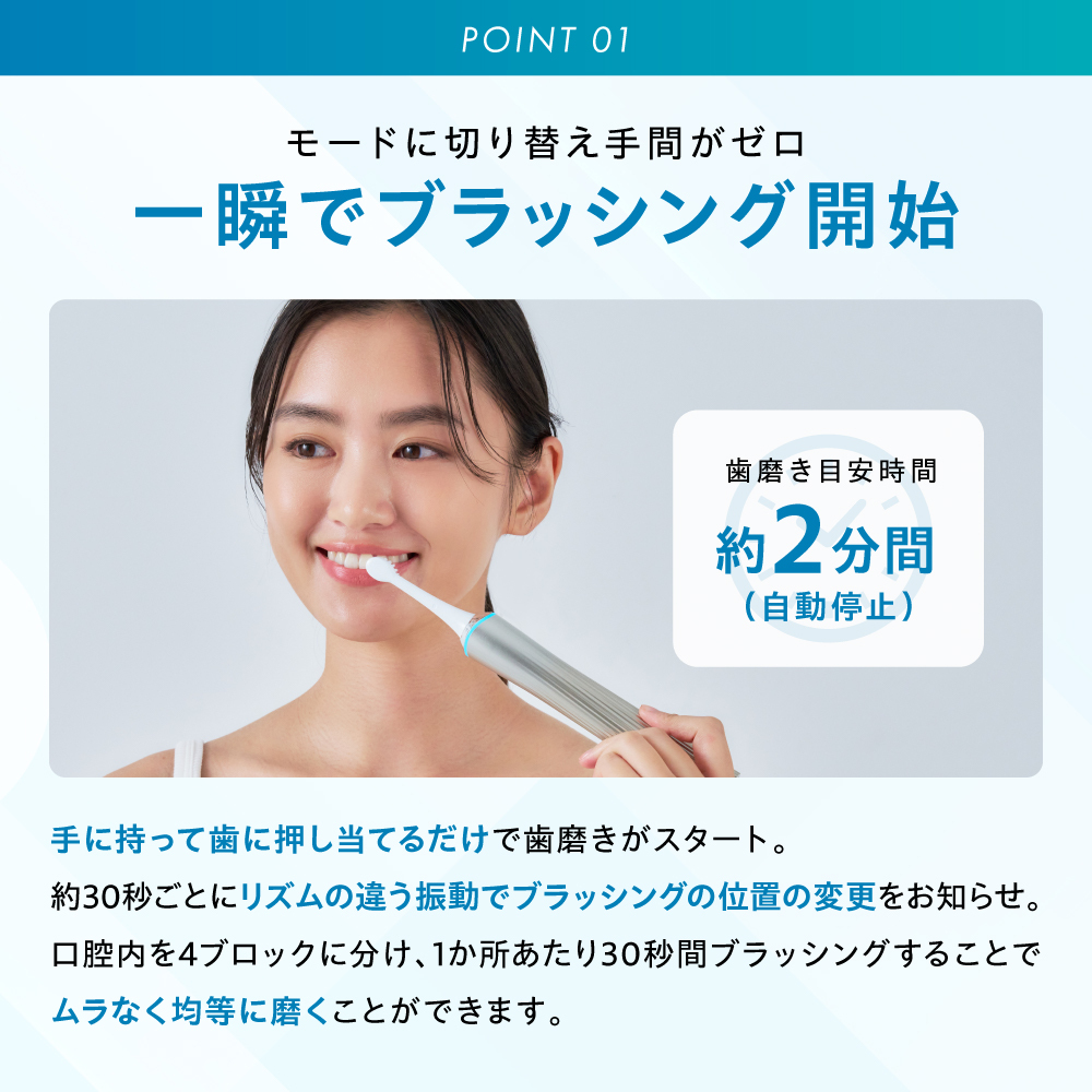 ボタンZERO、操作ZERO、ストレスZEROで、快適に毎日の歯磨きを。